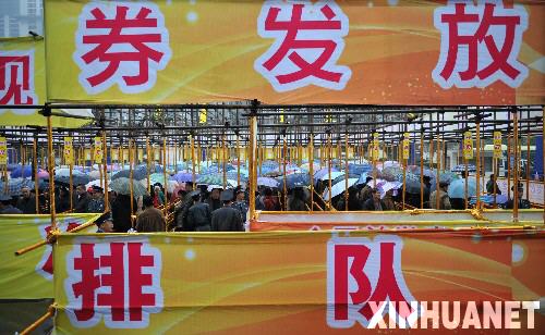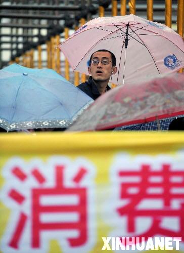 2月28日,重慶市民冒雨排隊等待領取消費券。 當日,國內某大型家居產品連鎖經營企業開始在重慶市發放面值500元的家居消費券,發放總額為1000萬元。消費券券面注明領券人姓名及身份證號碼,等同現金消費使用。 新華社記者 楊磊攝