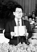 | 李瑞環主持全國政協九屆一次會議開幕大會。本報記者 徐 燁攝 |