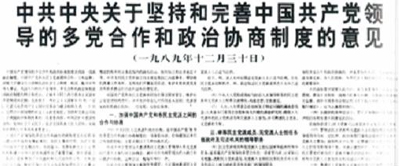 1989年12月30日,中共中央制定《中共中央關于堅持和完善中國共產黨領導的多黨合作和政治協商制度的意見》,使這一制度進一步規范化、制度化。