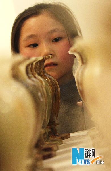 5月1日,沈雨欣在館內(nèi)參觀巴基斯坦的玉制品。新華社記者裴鑫攝