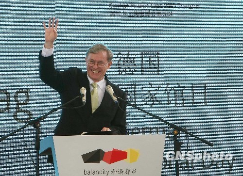 5月19日,德國總統霍斯特·克勒出席上海世博會德國國家館日活動,并在陽光谷觀看文藝演出。 中新社發 杜洋 攝