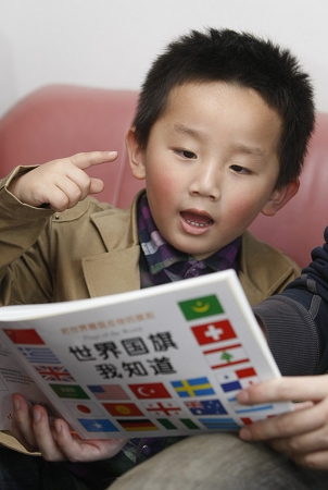東方網5月13日消息:據《東方早報》報道,家住浦東的陳思捷小朋友今年3歲,是個活潑可愛的小男孩。和同齡人不同的是,他有一手“看國旗識國家”的絕活。據他的家人介紹,小思捷能夠辨認近200個國家的國旗,還能說出國旗代表的國家及其首都。小思捷告訴記者:“我要去世博園里認國旗。”