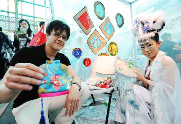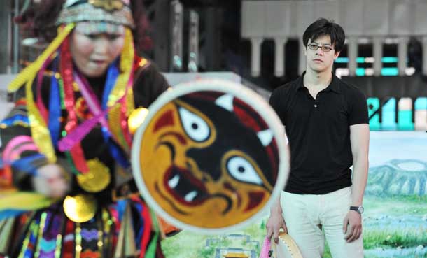 丹青受朋友之邀來到上海世博園時,正好趕上黑龍江活動周,寶鋼大舞臺的中國元素傳習區展示了黑龍江優秀的民族文化和傳統民間工藝。“馬背上的民族”鄂倫春族、“魚皮部落”赫哲族的民俗文化深深吸引著這位來自遙遠北美洲的年輕人,他對現場展示的鄂倫春族居住的“撮羅子”、赫哲族的魚皮衣興趣濃厚,還跟著赫哲族的民間藝人學跳了薩滿舞。
