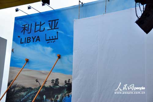 為了慶祝國家館日,利比亞館整個展館披上一身素白的“衣裙”,上面用阿拉伯文和中文寫著利比亞館的宣言:“地球是我家,人類是我的家人。” 人民網記者 蔣波攝