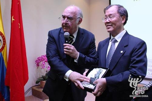 19日晚,“安蒂奧基亞,哥倫比亞最精彩的角落”投資推介會在哥倫比亞館舉行。推介會上,哥倫比亞館將“鎮館之寶”——為上海世博會專門雕琢的“綠寶石海寶”贈送給上海世博會博物館。安蒂奧基亞省省長路易斯·阿爾弗雷德·拉莫斯、哥倫比亞館總代表古斯塔夫·加維利亞、上海世博會中國政府總代表華君鐸等出席活動。