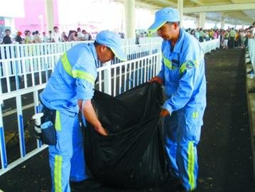 對于游客及媒體反映過的沙特館排隊區垃圾遍地的問題,鐘師傅也很無奈:“我們每天單掃沙特館的排隊區就要掃四五遍,掃出的垃圾至少可以裝滿30多只大垃圾桶。”