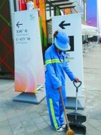 沙特館“清道夫”:排隊區每天清掃四五遍