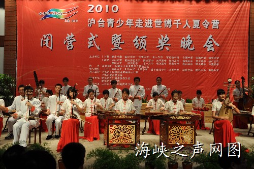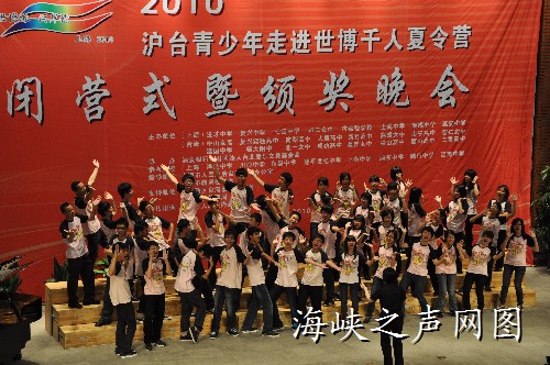 閉營儀式在負責這次活動接待的學校——上海進才中學大禮堂里舉行。主辦單位還向在參加這一次世博園主題攝影作品活動中獲獎的滬臺同學頒了獎。