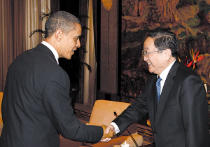 圖為俞正聲會(huì)見(jiàn)美國(guó)總統(tǒng)奧巴馬。