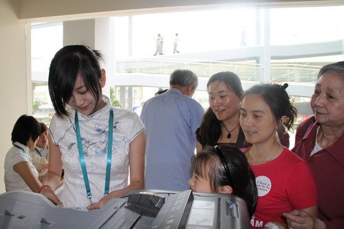 據(jù)敲章處的工作人員介紹說,這三幅畫中最受歡迎的還是外灘全景圖。來看世博的游客中,外地來上海旅游的游客對這張外灘的紀(jì)念圖片最感興趣。有的游客給世博護照敲章之后發(fā)現(xiàn)震旦館的這項貼心服務(wù)后,又會回去重新排隊領(lǐng)一張蓋章的外灘全景圖。