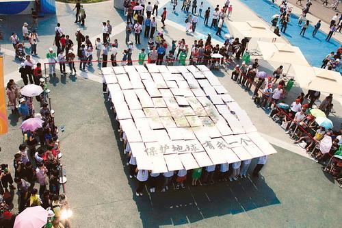昨天(5日)是世界環境日,上海世博會唯一參展的國際非政府自然保護組織——世界自然基金會(WWF)昨天迎來榮譽日。在世博園大洋洲廣場,100名來自華東師范大學的志愿者運用手中的圖板集體合作拼出了大熊貓的形象,并向現場觀眾發出“保護地球,有我一個”的號召,以此來向所有世博觀眾傳遞信息:地球是我們賴以生存的家園,可是地球的自然資源并不是取之不盡、用之不竭的。