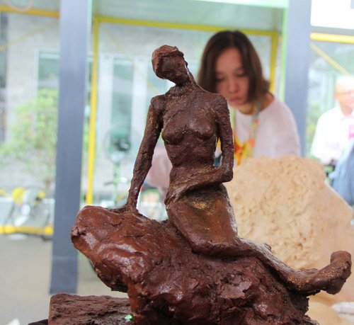 時值上海黃梅天,天氣悶熱空氣濕度大。冷卻凝固白巧克力制成的安徒生雕像一遇到空氣,臉上立刻涔涔的淌了滿臉的“淚水”,像極了某種隱喻。安徒生的一生,是凄涼且沒有愛情的一生。但同時他又是一個不幸的幸運者,他的童話風靡世界。