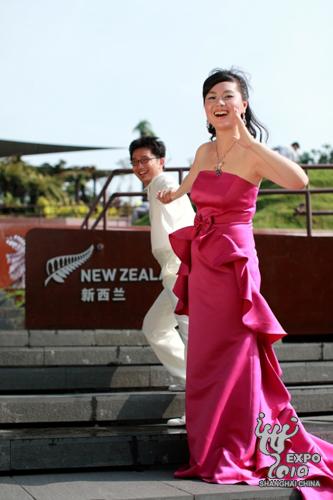 世七夕情人節(jié)即將來臨之際,上海世博會新西蘭國家館迎來了一對相戀三載、剛剛訂婚的戀人——李若曦和方燦琦。14日上午,兩人攜手踏上新西蘭館屋頂花園斜坡步道,新西蘭館方用獨特的新西蘭館“婚紗之旅”為這對“新人”提前慶祝七夕情人節(jié)。