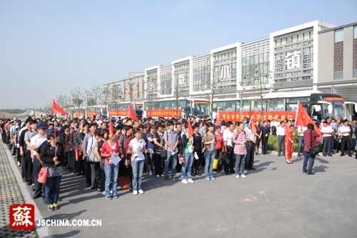 5月25日上午8時(shí)18分,在蘇州張家港永聯(lián)村的永聯(lián)小鎮(zhèn)廣場(chǎng)上,由350名村民職工代表組成的以“放眼看世界,享受新生活”為主題的萬(wàn)人游世博首發(fā)團(tuán),登上了開(kāi)往上海世博園區(qū)的旅游大巴。據(jù)永聯(lián)村黨委書(shū)記、永鋼集團(tuán)董事長(zhǎng)吳棟才介紹,此次該村共購(gòu)買(mǎi)了1.2萬(wàn)張世博門(mén)票,計(jì)劃用三個(gè)月左右時(shí)間,每天分批組織150人左右前往世博園參觀,總投資達(dá)400多萬(wàn)元。