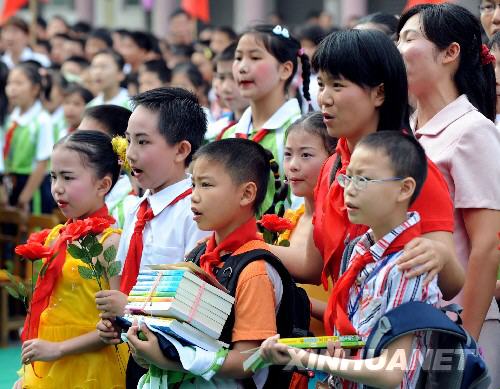 當(dāng)日,廣西岑溪市第二小學(xué)開(kāi)展“關(guān)愛(ài)災(zāi)區(qū)兒童 同歡‘六一’佳節(jié)”活動(dòng)。通過(guò)多彩的節(jié)目表演,讓最近轉(zhuǎn)學(xué)來(lái)校的兩名災(zāi)區(qū)兒童感受濃濃的集體情誼,共同迎接“六一”兒童節(jié)到來(lái)。 新華社記者張愛(ài)林?jǐn)z