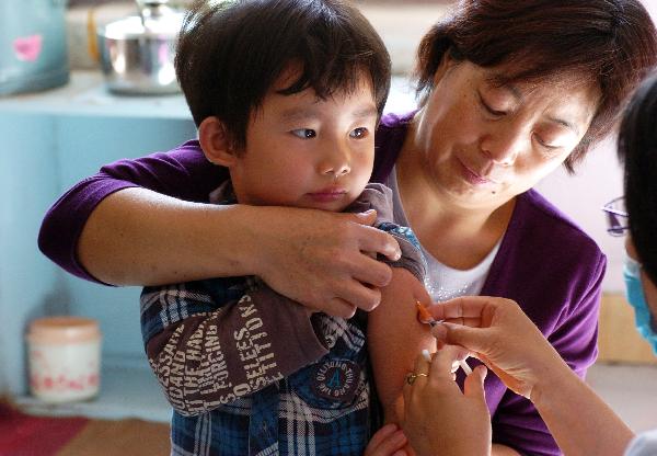 9月11日,醫務人員在寧夏銀川市安東小區的陽光幼兒園為小朋友接種麻疹疫苗。 新華社記者 覃海石 攝