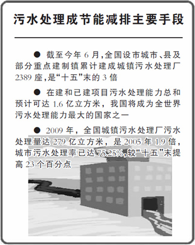 隨著工業(yè)化、城鎮(zhèn)化進(jìn)程加快,經(jīng)濟(jì)快速發(fā)展,人民生活水平不斷提高,污水排放量也在不斷增加。城鎮(zhèn)污水處理事業(yè)的發(fā)展,直接關(guān)系到城市公共衛(wèi)生安全與人居環(huán)境質(zhì)量的改善。“十一五”期間,我國(guó)不斷加大對(duì)城鎮(zhèn)污水處理設(shè)施建設(shè)的投資力度,積極引入市場(chǎng)機(jī)制,城鎮(zhèn)污水處理事業(yè)進(jìn)入發(fā)展快車道。截至2010年6月,全國(guó)設(shè)市城市、縣及部分重點(diǎn)建制鎮(zhèn)累計(jì)建成城鎮(zhèn)污水處理廠2389座,總處理能力達(dá)到1.15億立方米/日,分別是“十五”末的3倍和2倍。西藏自治區(qū)第一座污水處理廠昌都地區(qū)污水處理廠的建成調(diào)試,標(biāo)志著我國(guó)所有省、自治區(qū)、直轄市均已建成城鎮(zhèn)污水處理廠,其中北京、上海、山東、江蘇、浙江、河南、安徽、海南等。ㄖ陛犑校⿲(shí)現(xiàn)了縣縣建有污水處理廠。