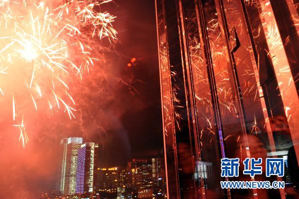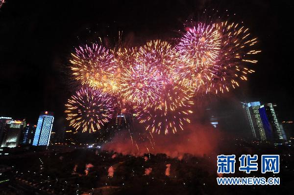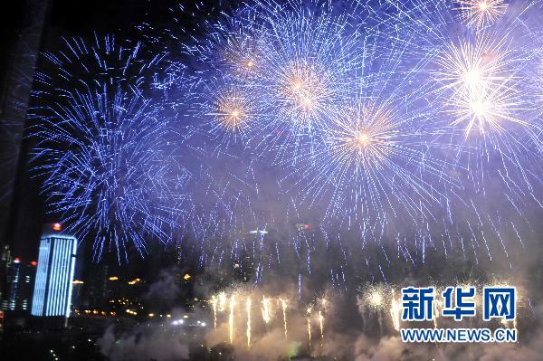 9月6日晚,絢麗的煙花在深圳上空綻放。新華社記者 陳曄華攝