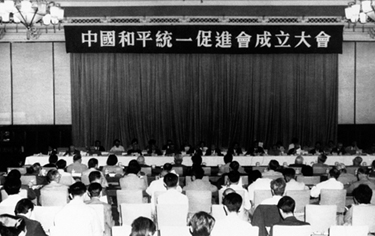 1988年9月22日,由社會(huì)各界人士組成的促進(jìn)中國(guó)和平統(tǒng)一的民間團(tuán)體“中國(guó)和平統(tǒng)一促進(jìn)會(huì)”在北京宣告成立,參加發(fā)起的二十三家單位為個(gè)民主黨派和有關(guān)人民團(tuán)體。
