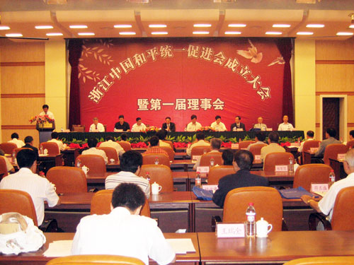 會議審議通過了《浙江中國和平統(tǒng)一促進會章程》,選舉了第一屆理事會會長、執(zhí)行副會長、副會長、秘書長、常務理事等。中共浙江省委副書記夏寶龍當選為第一屆理事會會長。各民主黨派省委會和省工商聯(lián)的負責人等出席大會。
