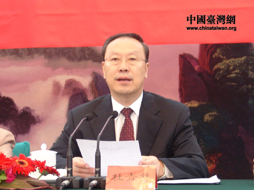 全國政協副主席、中共中央統戰部部長、中國和平統一促進會新任執行副會長杜青林在會上講話。