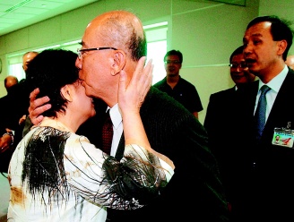 據(jù)臺(tái)灣《聯(lián)合報(bào)》報(bào)道,吳伯雄25日率領(lǐng)國(guó)民黨訪問(wèn)團(tuán)赴大陸參訪,臨上飛機(jī)前,吳伯雄深情吻別妻子,一旁送行的國(guó)民黨副主席朱立倫看到這個(gè)難得鏡頭,都張大嘴表情驚訝。