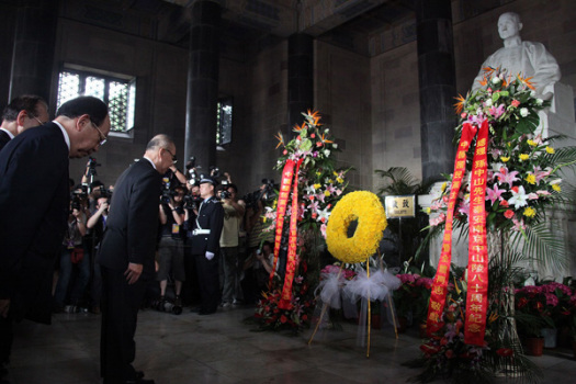 6月1日,中國國民黨主席吳伯雄和他率領的中國國民黨大陸訪問團在南京中山陵舉行謁陵紀念活動,紀念孫中山先生奉安80周年。新華社記者 邢廣利 攝
