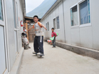北川縣桂溪板房區一位孩子玩滑板]]>