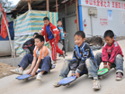 北川縣孩子們高興地玩滑板]]>