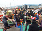 一對北川新人正在給路過的客人分喜煙]]>