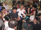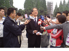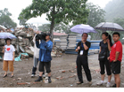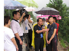 臺灣著名新聞主播李四端先生在北川地震遺址冒雨采訪]]>