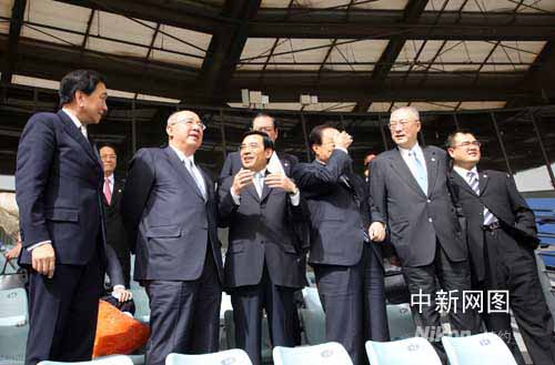 吳伯雄繞有興致地聽取了有關棒球場籌備情況的介紹,他坦言這里是臺灣觀眾最關注的場地,并期待兩個月后中華臺北棒球隊的健兒在這里大展身手,更相信大陸觀眾會給予他們最熱烈的助威。