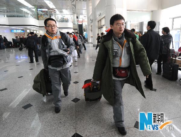 4月15日,醫療隊員在北京南苑機場準備出發。當日,北京第一批急救醫療隊趕赴青海玉樹地震災區開展救援。急救醫療隊由來自北京大學第一醫院、北京大學第三醫院、北京大學人民醫院、北京積水潭醫院、北京朝陽醫院、北京兒童醫院和北京急救中心的60余名醫護人員組成,包括臨床骨科、普外、腦外、腎內、胸外等專業,同時攜帶近8噸的急救物資和生活用品。新華社記者李文攝