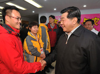 賈慶林在西寧看望臺灣醫療救援隊成員