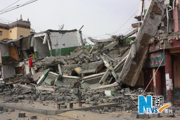 4月14日拍攝的玉樹州結(jié)古鎮(zhèn)倒塌的房屋。當(dāng)日早上7時49分,青海省玉樹藏族自治州玉樹縣(北緯33.1度,東經(jīng)96.7度)發(fā)生7.1級地震。截至14日13時,青海玉樹地震已造成300人遇難,8000人受傷。新華社發(fā)(吳宏 攝)