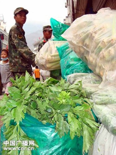 這批蔬菜主要是供給救災部隊,以保證戰士們的體力。