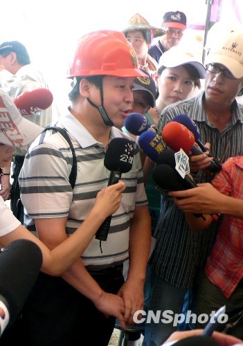 8月23日,大陸3名技術(shù)人員出現(xiàn)在臺(tái)灣高雄縣災(zāi)民安置活動(dòng)板房建設(shè)工地。深圳雅致集成房屋公司工程部經(jīng)理?xiàng)钤?右一)表示,他們一行將為活動(dòng)板房搭建工作提供技術(shù)支持,并對(duì)現(xiàn)場(chǎng)施工人員進(jìn)行培訓(xùn);另外,公司有7個(gè)技術(shù)人員待命、可隨時(shí)前來(lái)協(xié)助,就等臺(tái)灣方面通知。新社發(fā) 劉舒凌 攝