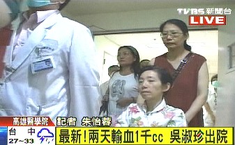 中國臺灣網7月10日消息 據臺灣TVBS電視臺報道,昨天吳淑珍因痔瘡出血失血過多導致低血壓送醫急救,醫院幫她輸血并施打鐵劑后身體好轉,吳淑珍今天下午4點多出院。