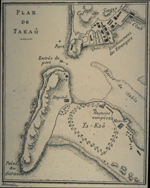 也因為當時打狗港附近的腹地逐漸開發,加上逐漸開發的打狗地區民生物資物價較為低廉,于是外商紛紛轉移至打狗來采買民生物品以及設立貿易據點。清朝時期打狗港正式開港前后,打狗港便已成為英、美商人爭逐的地盤,但由于美商經營不善,加上英國領事館在此設立,因此打狗港逐漸成為英商的地盤。而隨著對外貿易的逐步發展,打狗港附近也開始產生許多新的聚落,高雄市目前許多地名,如旗后莊、鹽埕埔莊、哨船頭、苓仔寮、三塊厝等地便是此時隨著打狗港的開發而開始發跡。