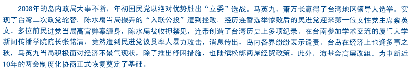 原陳水扁當局今年弊案連連,僅陳水扁一人先行偵結的就有四大弊案,前臺當局“內政部長”余政憲、原陳水扁當局調查部門主管葉盛茂、前扁辦秘書長邱義仁紛紛被扯下水,陳水扁女兒陳幸妤一句“民進黨人誰沒拿過我爸爸的錢”更是讓民進黨高官噤若寒蟬,此外,民進黨籍的云林縣長蘇治芬、嘉義縣長陳明文也相繼因貪污被起訴收押。【全文】