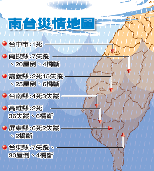 南臺災情地圖。(圖片來源:臺灣《聯合報》)