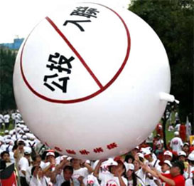 不滿藍綠陣營分別舉辦游行,推動入聯返聯“公投”案,“反公投入聯”行動聯盟15日舉行“反公投入聯活動”,群眾推舉反對“公投入聯”氣球( 來源:“中央社”)