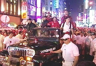 中國臺灣網9月16日消息 據臺媒報道,由臺“倒扁”總部發起的“915螢光圍城游行”在昨天傍晚6時正式出發。雖然臺島北部受到臺風影響,時雨時晴,但游行人群熱情不減,據稱有逾75萬之眾身著紅衣、手拿紅色熒光棒,在總指揮施明德的帶領下,對臺當局“總統府”和陳水扁的玉山寓所形成包圍之勢,“嗆扁”下臺,“阿扁下臺”的喊聲響徹臺北街頭。(云鵬)