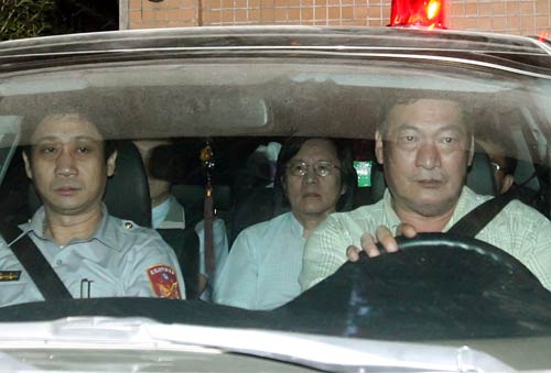 臺灣特偵組30日晚間傳喚臺當局前“國安會秘書長”邱義仁(中)及5名證人到案。檢察官偵訊后認為邱義仁涉嫌利用職務詐取財物罪嫌,于31日凌晨將邱義仁移送法院聲請羈押禁見。臺北法院審理后裁準,邱義仁坐進囚車,被送往臺北看守所。“中央社”圖