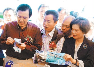據臺灣《聯合報》報道,馬英九23日到宜蘭縣帶頭消費拼經濟,先是在鯖魚節活動買了兩萬元(新臺幣,下同)魚松、鹽漬鯖魚,接著又到“鴨鄉鴨香”活動花兩萬一千六百元買鴨賞等食品。