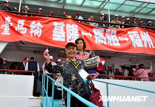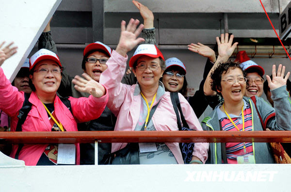 11月8日,抵達福州馬尾港的臺灣游客向前來迎接的福州鄉親招手致意。 新華社記者 張國俊 攝
