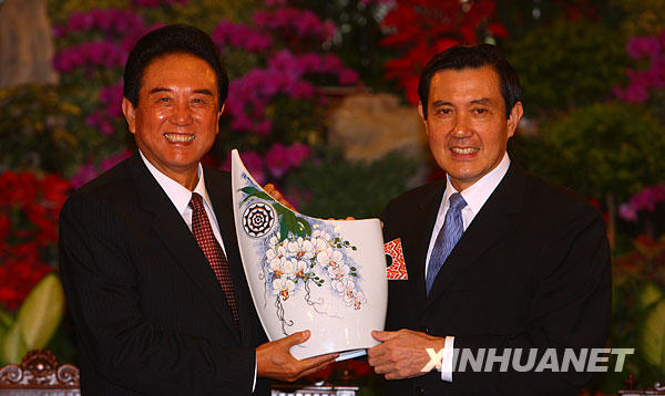 新華網快訊:馬英九與海協會會長陳云林的會面于11時5分許結束,雙方互贈了禮物。