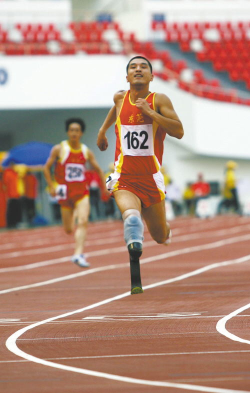東莞殘疾人運(yùn)動(dòng)已取得了累累碩果:在今年全國(guó)殘疾人田徑錦標(biāo)賽中斬獲三枚金牌,在剛剛結(jié)束的省殘運(yùn)會(huì)中奪得了團(tuán)體總分第三名的好成績(jī),成立了殘疾人體育協(xié)會(huì)。市殘聯(lián)副主席黃志良昨日接受記者采訪時(shí)透露,我市已初步制訂了《東莞市殘疾人體育工作獎(jiǎng)勵(lì)方案》,準(zhǔn)備報(bào)市政府通過(guò)后出臺(tái)。