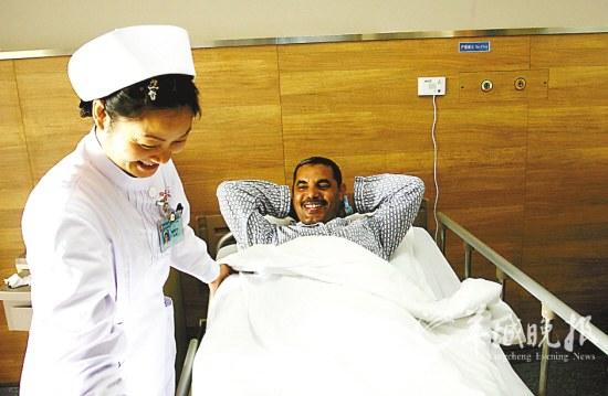 11月19日晚,聞?dòng)嵍鴣?lái)的亞奧理事會(huì)醫(yī)務(wù)委員會(huì)卡塔爾籍官員在看望了Saleh Noor后,稱(chēng)贊:“醫(yī)院診斷準(zhǔn)確、實(shí)施手術(shù)完美、醫(yī)護(hù)服務(wù)周到,病人在醫(yī)院病房享受到‘國(guó)王’一樣的禮遇。”
