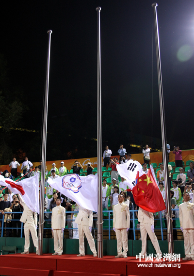 中華臺北隊軟式網球男團奪金,現場升起中華臺北奧委會會旗。(中國臺灣網 鐘寶華 攝)